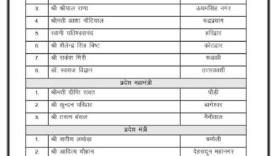 उत्तराखंड भाजपा ने घोषित की अपनी नई टीम